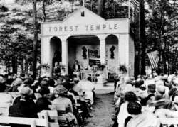 In 1895, the Alden House was purchased by Mrs. Abby Pettengill and renamed the Leolyn, after her granddaughter. Mrs. Pettengill then sold the building to the Assembly. The auditorium was remodeled in 1916, with seating increased to 1,200. Even so, many times during the history of Lily Dale people have stood three deep outside the auditorium in order to hear the lecture. A beautiful healing Temple was added by Louis Vosburg in 1955, under the direction of Thomas John (Jack) Kelly’s spirit guide.